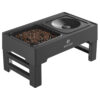 Diese praktische Futterstation verhindert nicht nur, dass der Hund seinen Napf rumschiebt, sie beinhaltet auch einen Anti-Schlingnapf der den Hund langsamer fressen lässt sowie einen speziellen Wassernapf, der das kleckern verhindert.